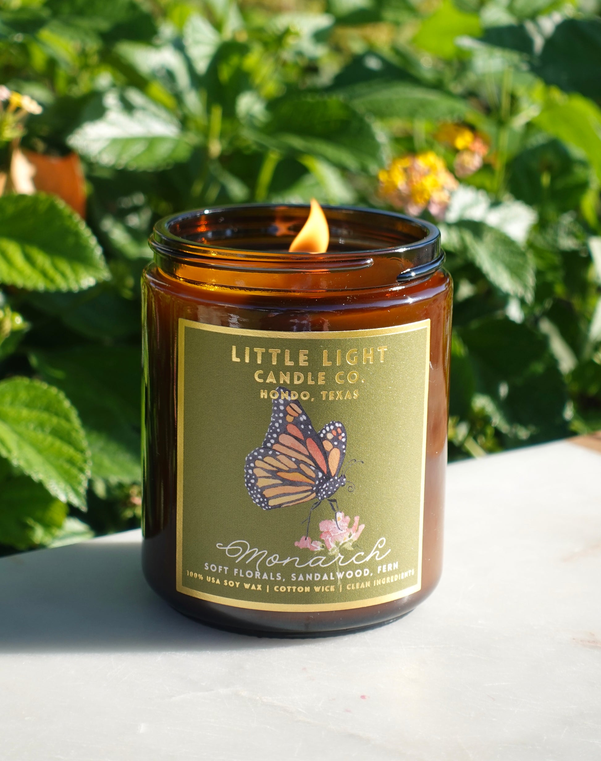 Inspired by the monarch butterfly’s fall migration through Texas to the Oyamel fir forests of Mexico, this candle blends light florals, sandalwood, and fresh fern. A fragrance that celebrates beauty in the journey and the joy of rising higher!